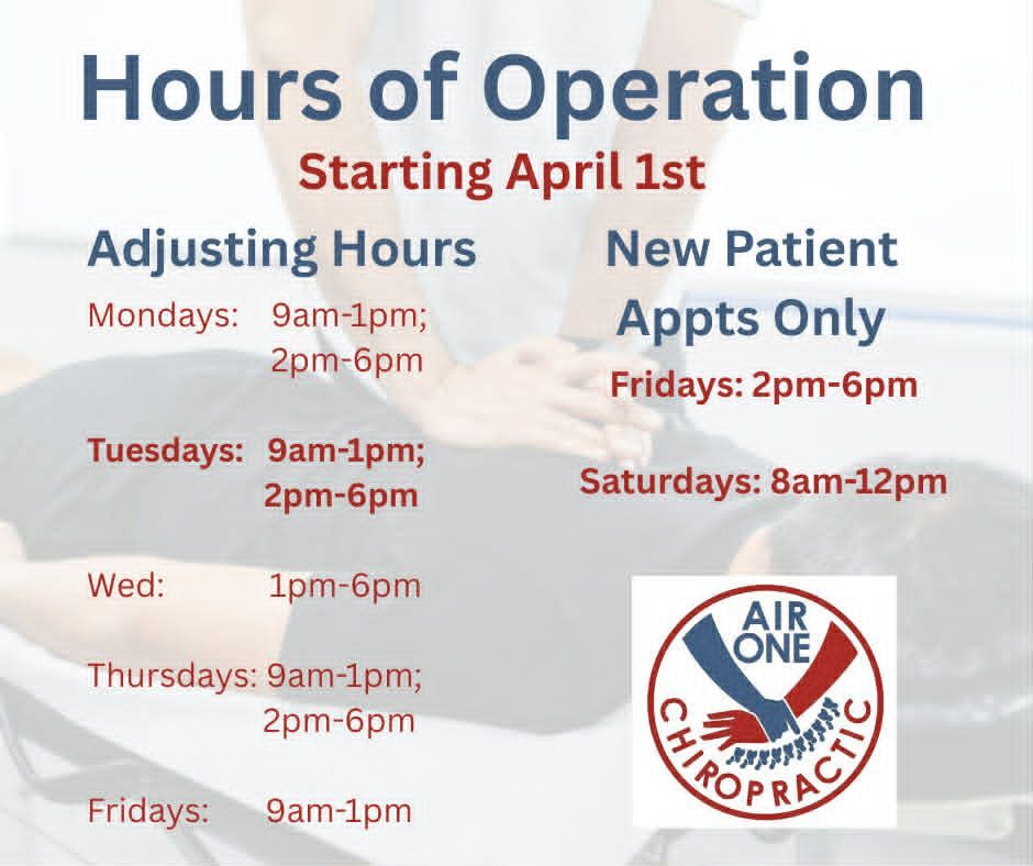 At Air One Chiropractic, we take pride in providing exceptional chiropractic services to our patients. We would be grateful if you could share your thoughts about our practice with others. Your feedback helps us improve and helps others make informed decisions. Please take a moment to leave a review of Air One Chiropractic and let others know what you think.